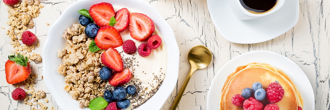 Lívance s jogurtem, granolou a ovocem