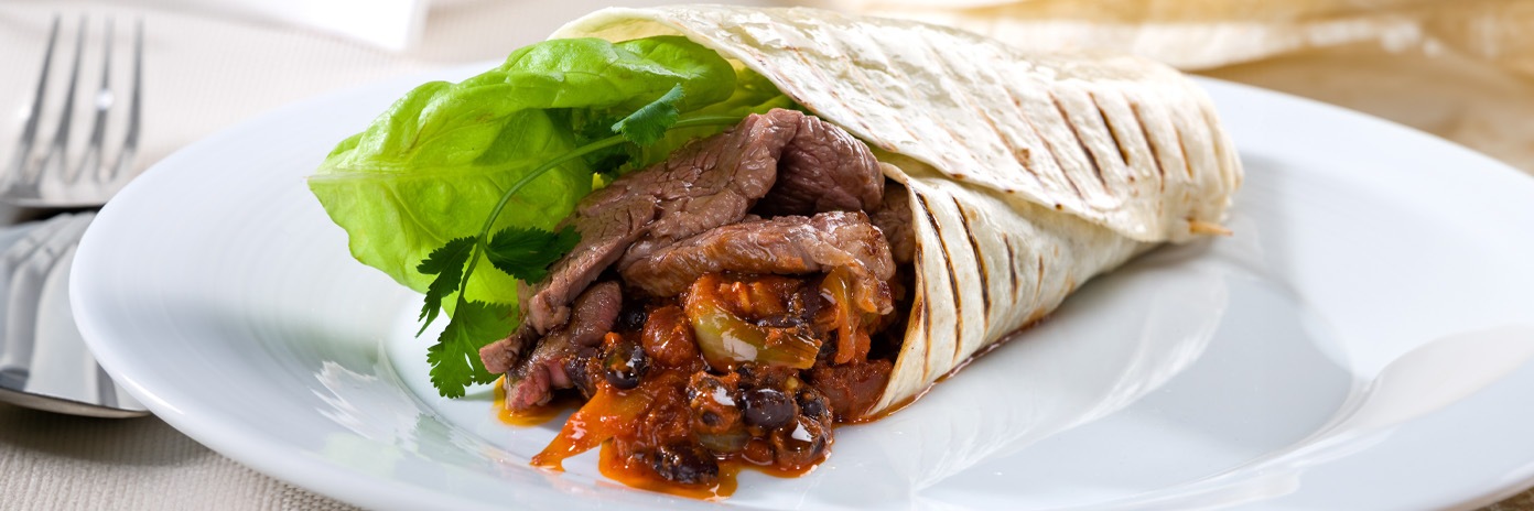 Tortillu potřeme trochou omáčky z masa a fazolí, na střed klademe na nudličky nakrájení pekinské zelí, překrájená rajčata, směs masa a fazolí a zabalíme. Při balení musíme tortillu dobře utáhnout.