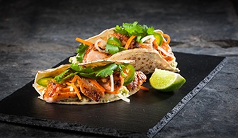 Tacos s grilovaným lososem a marinovanou zeleninou