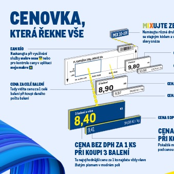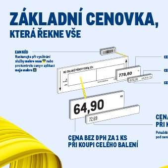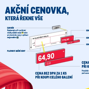 Na cenovkách bude zpět zákazníky požadovaná informace o ceně balení. Cenovky se tisknou přímo na prodejnách přes systém M.Store, což zrychlí proces, sníží chybovost a omezí odpad.